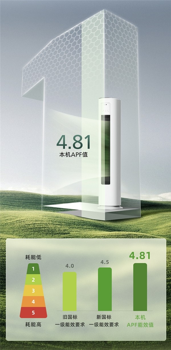 在能效表现上,“至风”以超国家新一级能效标准领跑,APF值高达4.81,搭载R32环保冷媒,在高效制冷制热的同时大幅降低能耗。优质亲水铝箔与高密度内螺纹铜管的黄金组合,确保长久使用依旧高效换热,以绿色低碳的省心体验,陪伴家庭走过数十个四季轮回。