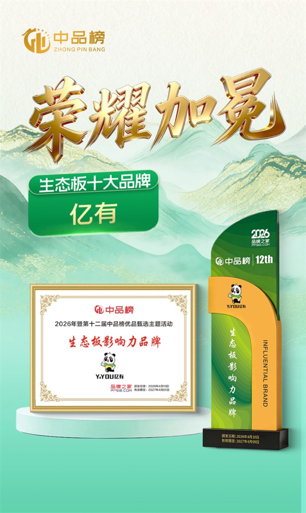 绿色筑家 实力登榜|亿有板材荣膺2026中品榜生态板十大品牌