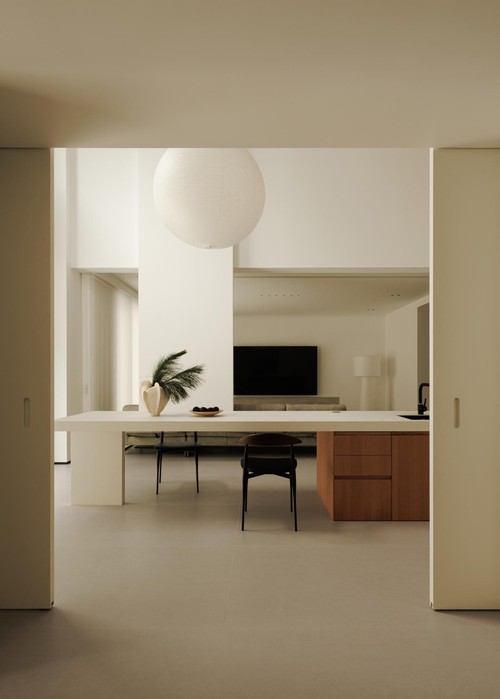 “白是有层次的,”她解释道,“哑光白的墙面、暖白的定制柜、带有肌理感的艺术涂料,在不同光线下会呈现出丰富的质感。”