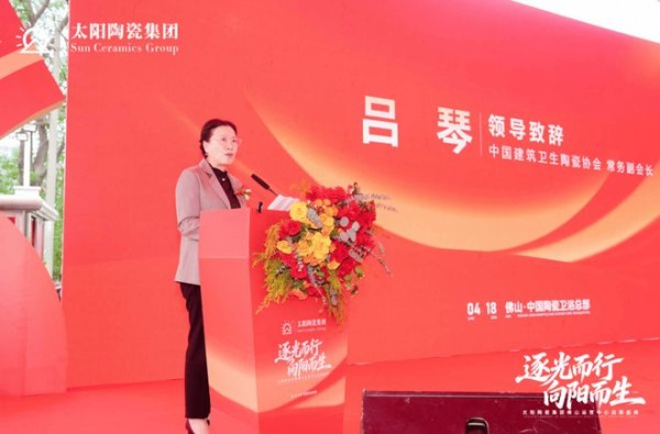 中国建筑卫生陶瓷协会常务副会长吕琴致辞表示热烈祝贺。她指出,“逐光而行,向阳而生”的主题深刻契合了当前产业在变革中寻求突破、于挑战中孕育新机的时代精神,支持像太阳陶瓷集团这样的标杆企业为中国建陶产业高质量发展做出更大贡献。