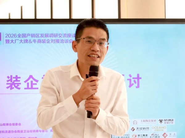 4月19日下午,2026全国产销区发展调研座谈会暨大厂大牌&牛商装企对接洽谈会(广东站),在佛山陶瓷卫浴总部基地法恩莎瓷砖展厅成功举办。