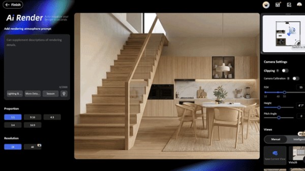 居然设计家此前推出的AI设计工具,已在这一方向上进行了探索。例如,AI设计我家功能可以实现从搜户型、传户型到选风格、生成3D方案的全流程智能化,生成的方案在布局合理性、内容丰富度以及镜头和布光方面,都在持续优化。这些技术能力的积累,正是居然设计家能够在AIDA大赛中集中展示AI设计成果的基础。