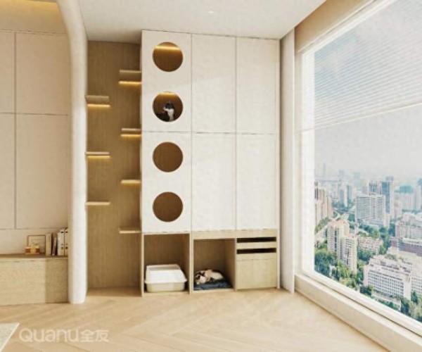 养宠家庭可以把阳台改成宠物柜。下面放宠物床,旁边柜子可以放宠物食品、玩具、清洁用品。宠物有了自己的地盘,拆家率直线下降!
