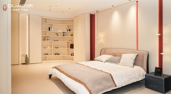 · 工艺层面:目前,OUiKE欧客已实现板木结合、油免互通、曲面异型、门墙柜一体等核心能力落地,局部运用非遗掐丝珐琅、景泰蓝等添彩,确保高定质感不打折。