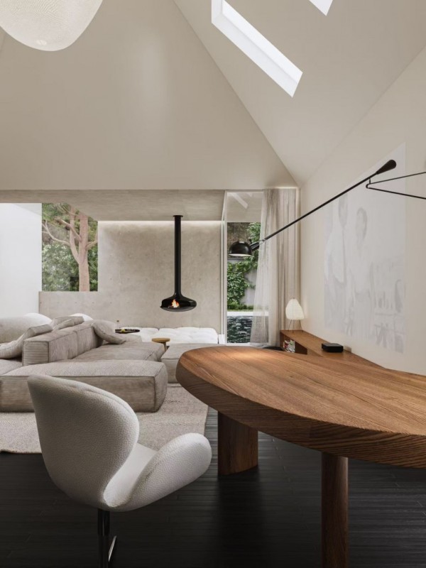 Ruth: 自然光是最好的建筑材料。屋顶的天窗将变幻的云影和四季的绿意直接引入室内,光线随着时间在白色斜墙上缓慢推移,空间因此有了时间的维度。