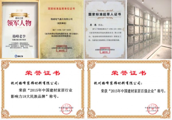 凭借硬核实力,格峰稳居行业引领地位。作为隐藏式晾衣机品类的开创者与定义者,格峰不仅主导市场方向,更推动行业规范化。2024年发布的国家标准GB/T4706.123-2024首次将“隐藏式晾衣机”列为独立品类,格峰作为起草单位,创始人李港获颁“国家标准起草人”证书。中国建筑装饰装修材料协会金属装饰材料分会秘书长徐刚评价:“格峰已成为隐藏式晾晒的行业代名词。”这是对格峰在行业内地位的高度认可,也是对格峰多年来努力的肯定。